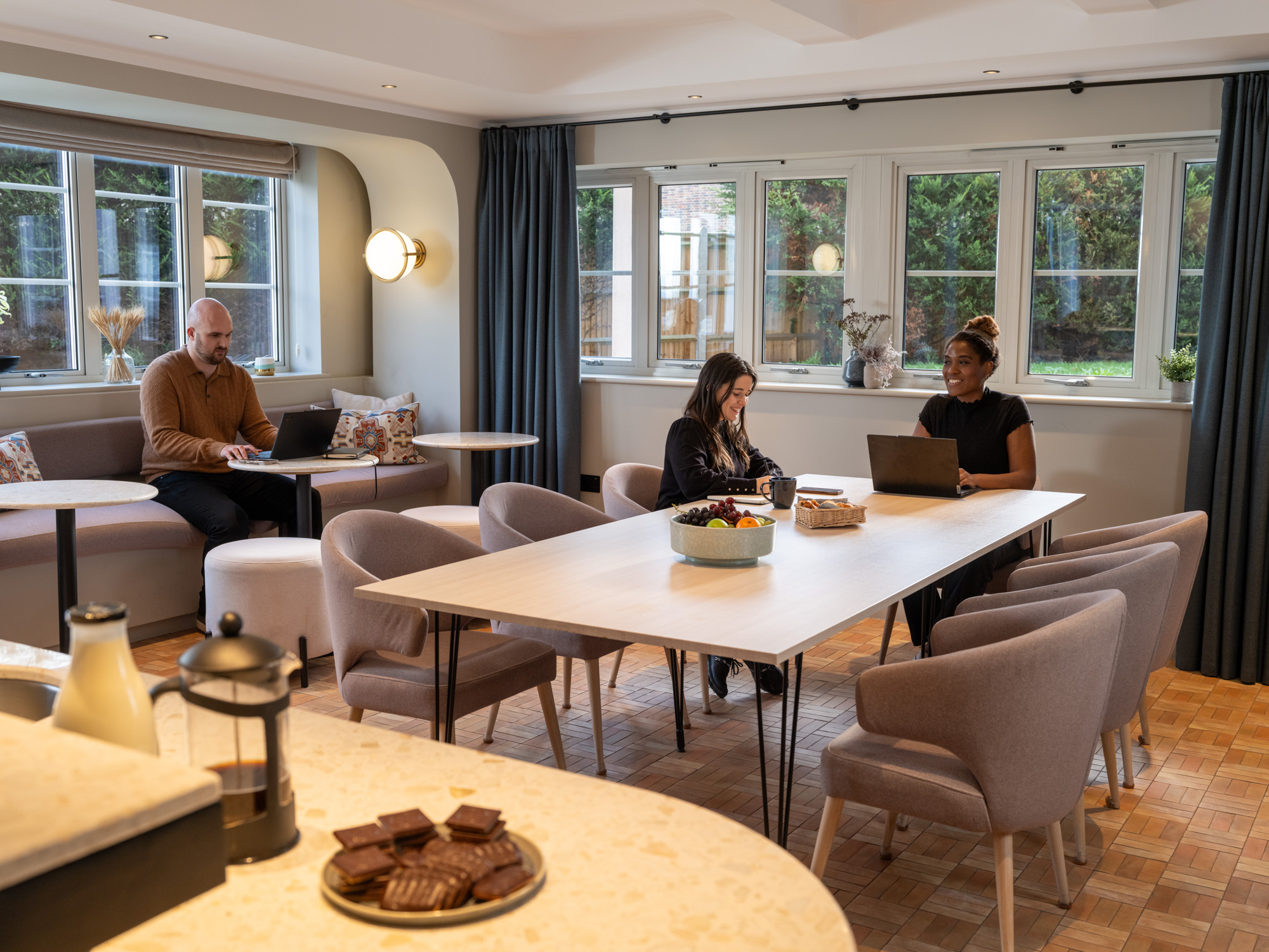 Meet with likeminded people in many shared spaces designed for connection and relaxation